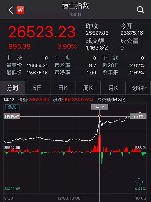 香港股市飙涨千点