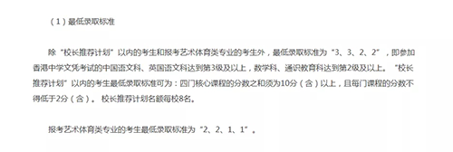 因此,香港学生若报考以上112所内地高校,可直接用香港中学文凭考试(HKDSE)成绩报考。但须达到如下最低标准: