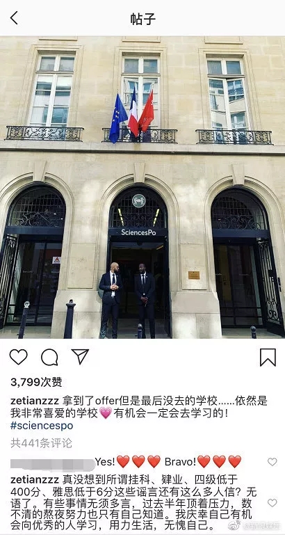 面对网友的质疑和抹黑,她在几天前发布的巴黎政治学院的ins下面,更新一条评论,否认了过去关于她“成绩差”的所有谣言。