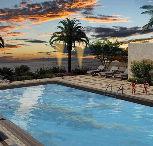 小区内配有游泳池、健身房、足球场、篮球场、游乐园等设施。而且周围可以看到生机勃勃的绿植,风景宜人。