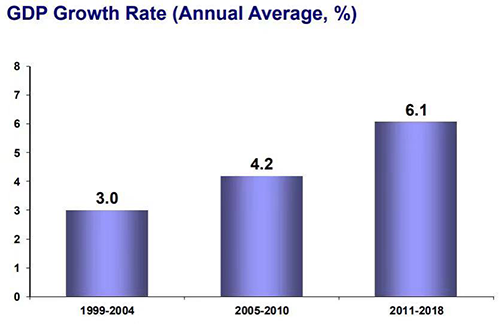 据土耳其统计局数据,2018年,土耳其GDP约7840亿美元。2011到2018年之间,GDP年平均增长率达到了6.1%。土耳其经济前景一片光明,已经成为发展迅速的经济体。