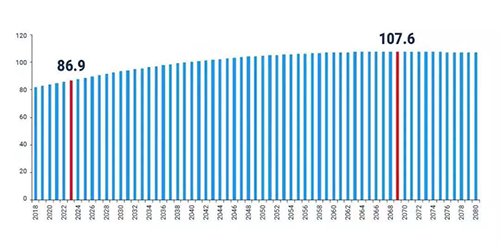 根据土耳其统计局(TurkStat)预计,到2023年,人口将达到8690万,到2040年,突破1亿30万。预计人口将保持增长势头到2069年,将达到一亿760万高峰。