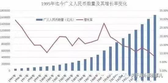 1995年底的时候,中国的广义人民币供应量大约是6.075万亿元,今天已经变为167.68万亿元,折算下来,广义货币数量变为1995年底的27.6倍。