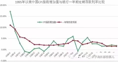 由上图可知,按照中国官方公布的CPI,一半时间里都比央行一年期定期存款利率高,这说明过去20多年的时间,很多时候就是在掠夺存款人来补贴银行。