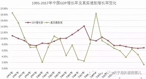 根据央妈最新公布的数据,2017年中国总体的广义货币供应增长率为8.2%,而根据统计局透露的口风,2017年中国GDP增长率约为6.9%,由此算下来,中国2017年的真实通胀率为1.3%。