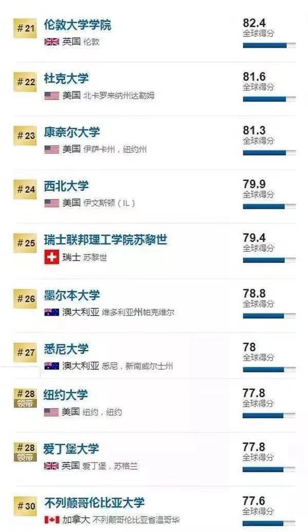 US News还放出话来:在后期还会放出一些排名,包括非洲、亚洲、澳大利亚/新西兰、欧洲和拉丁美洲五个地区的顶级大学排名;44个国家的顶级大学排名;22个学科领域的全球顶尖大学排名等。