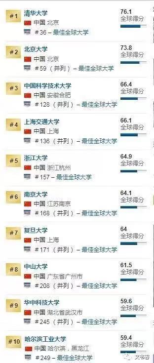 中国大陆有145所高校进入榜单,部分中国高校名次提升较大。