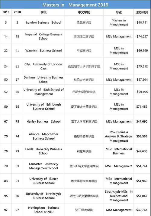 其中伦敦商学院、帝国理工商学院、华威商学院、卡斯商学院提供的管理学硕士课程进入了排名的TOP50。