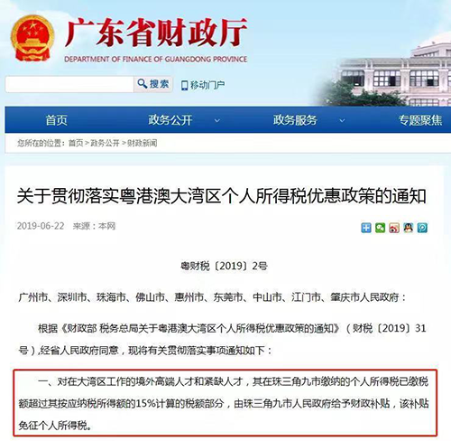粤港澳大湾区个人所得税优惠政策