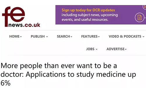 整体申请人数增长的同时,英国大学医学院也是连着第三年增加名额扩招。