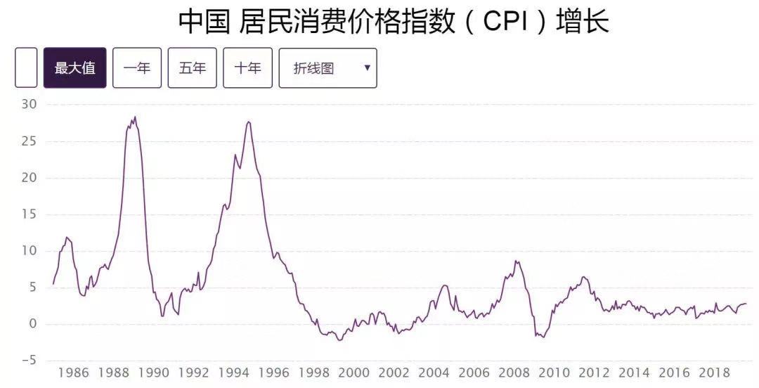 不过,大家也不用慌。我们把时间拉长看,比较1986年到2019年的CPI,最高点出现在1988年与1994年,高达25%以上。2000年以后,CPI虽有波动,但较为平稳。