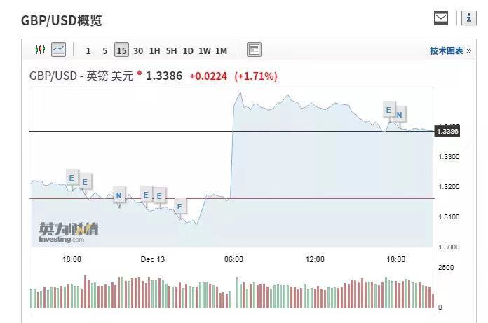 此次英国议会选举结果将对英国“脱欧”前景产生重大影响。受此提振,英镑兑美元汇率在北京时间13日午间急速拉升,一度超过1.35水平,创下自2018年5月以来的最高水平。