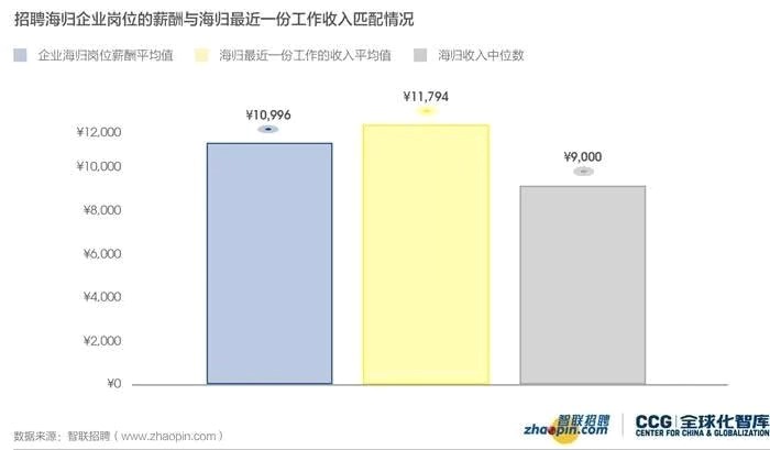 报告显示2019年,企业招聘海归平均月薪酬为10996元。