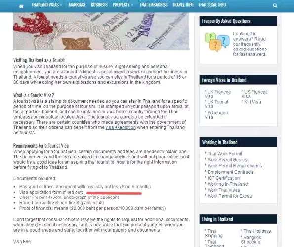 泰国:入境时,要求护照有效期至少6个月以上