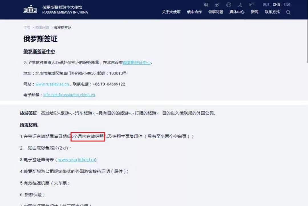 俄罗斯:需要提供在签证有效期届满日期后6个月内有效的护照
