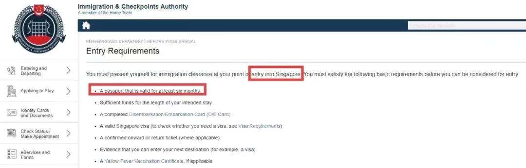 新加坡:要求在入境时,护照有效期必须要在6个月以上