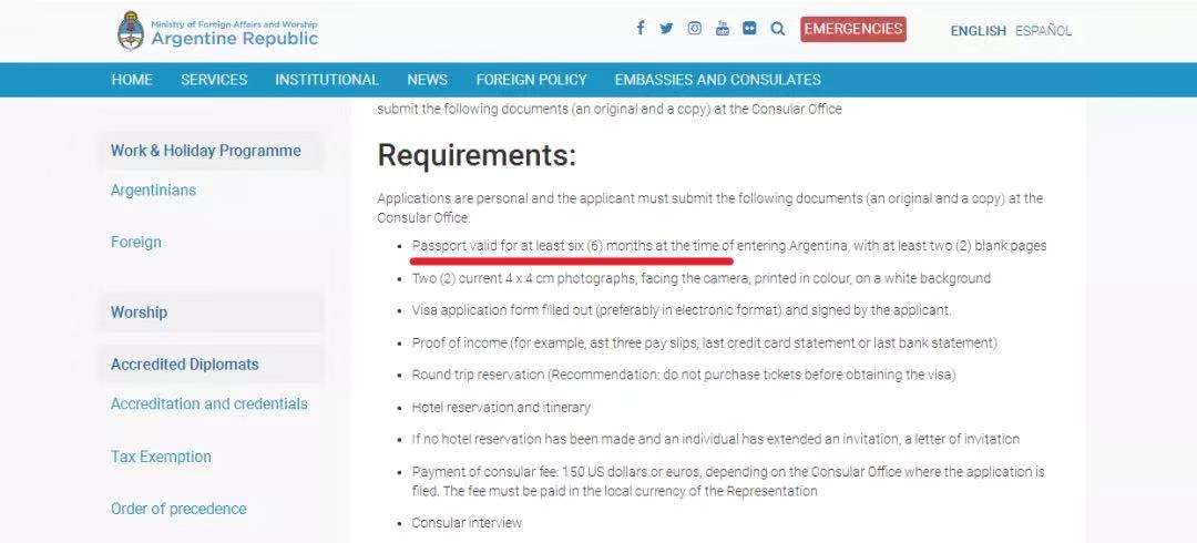 阿根廷:入境时,要求护照至少有6个月的有效期