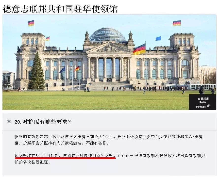 德国:如护照将在6个月内到期,则应在申请签证时使用新的护照