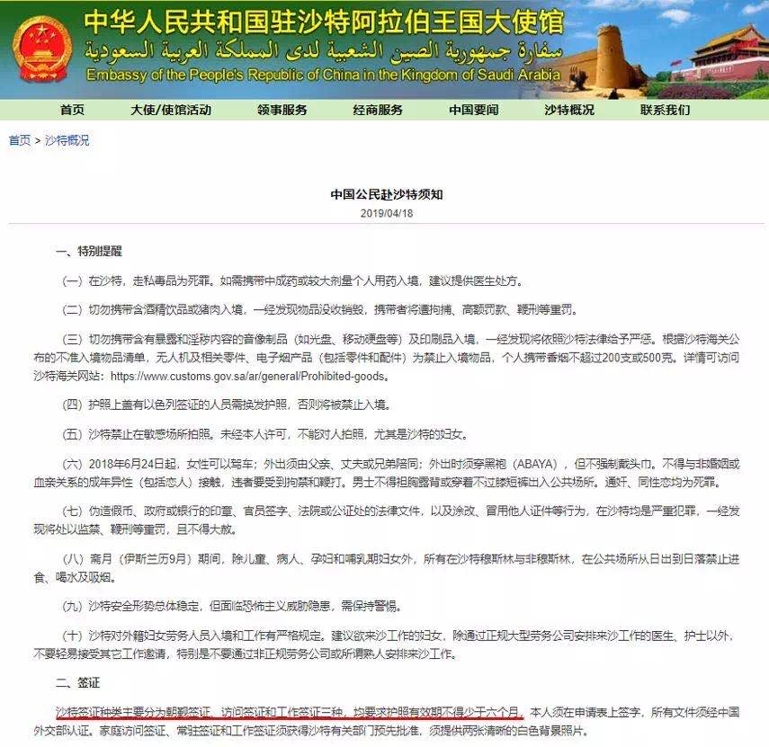 沙特阿拉伯:要求护照有效期不得少于6个月
