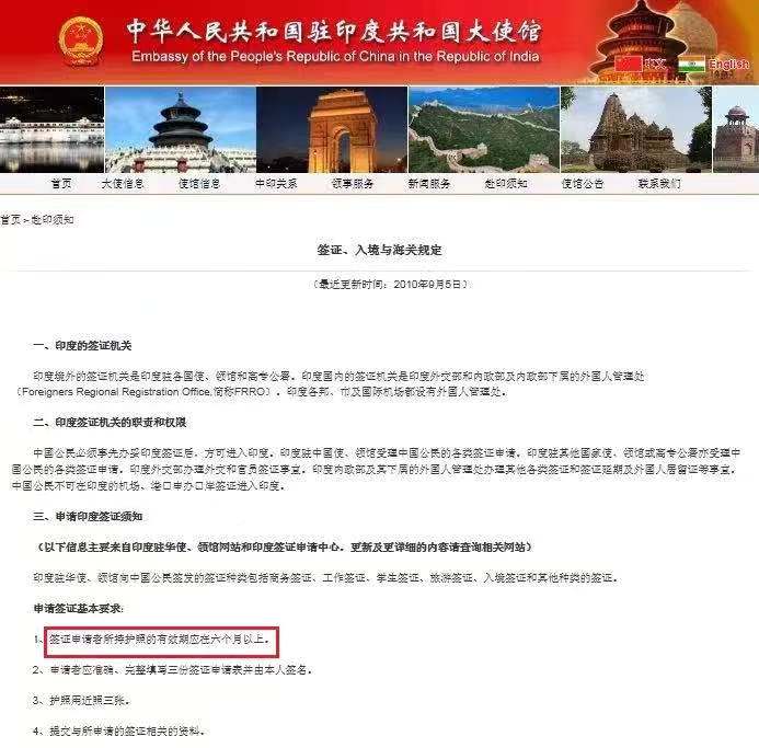 印度:申请者所持护照有效期应在6个月以上