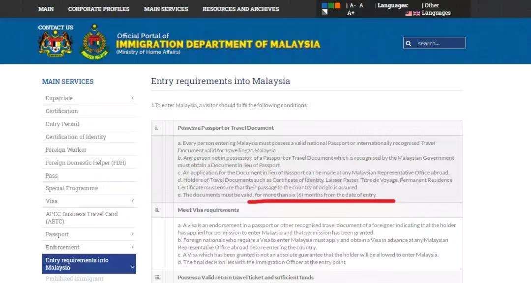 马来西亚:入境时,持有有效期超过6个月的护照