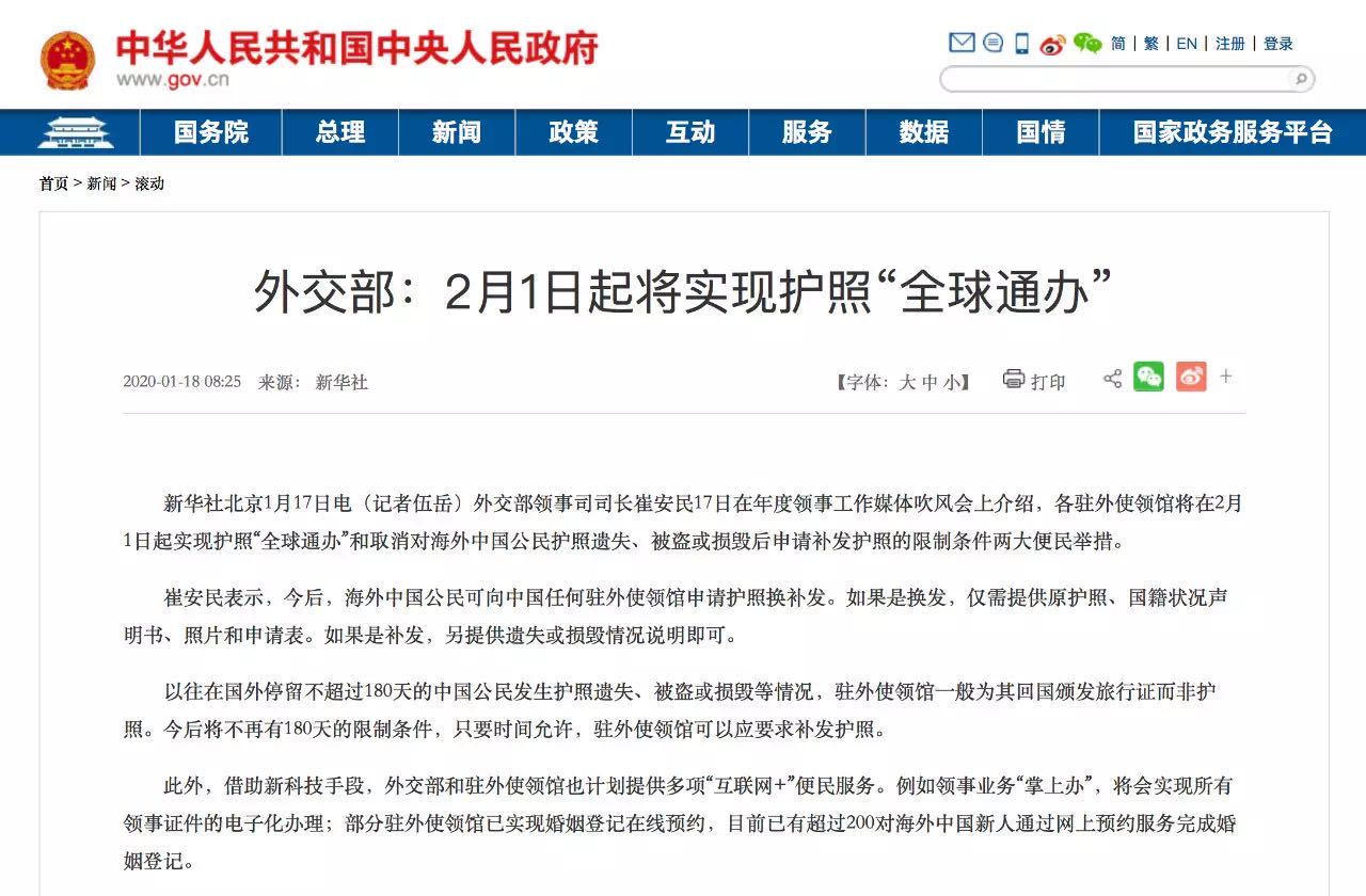 据人民日报官微报道,外交部2月起实施便民措施,实现海外中国公民护照全球通办。
