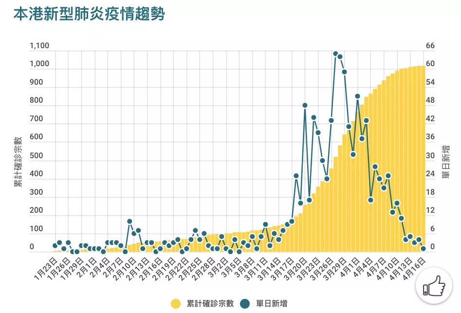 香港疫情的控制成效在全球名列前茅,截止4月19日,香港新增确诊个案连续四天维持5宗或以下。
