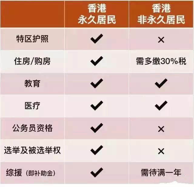究竟两者除了居港年期有异外,居民权利及福利有什么分别?