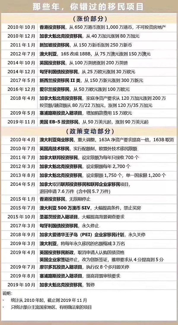 一般来说,大多数投资移民项目有这样一个生命周期:有序开放→提高条件→突然涨价→拥堵排期→关停。也有一些项目,是经由该国政府权衡利弊之后直接关停的,出乎意料却在情理之中。