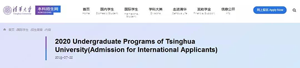 早前,清华大学官网就公布了《2020年清华大学国际学生(本科)招生简章》, 招收外籍华人在内的国际学生,并采用“申请-审核”制。