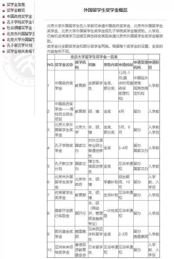 此外,所有报考北大等中国大学的外国学生,还可以通过中国使领馆申请政府奖学金,已经在北京就读高中的外国留学生,还可以直接向北大申请奖学金。