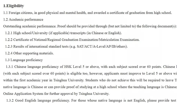 最新的清华国际招生简章明确列出了申请标准:
