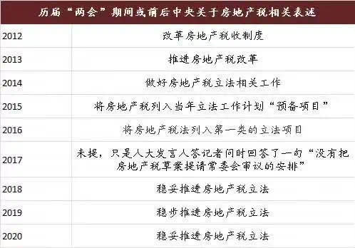 2015年的时候房产税就被列入五年立法规划,2018年的政府报告对于房地产税的表述变更为“稳妥推进房地产税立法”。