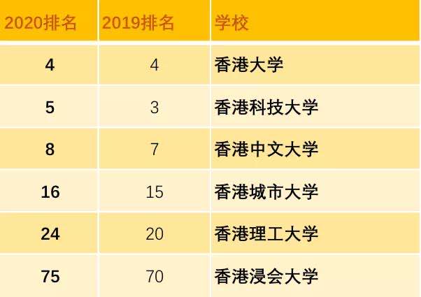 香港科技大学、香港中文大学分列亚洲第5和第8名,跻身前10。香港城市大学、台湾大学、香港理工大学、澳门科技大学、台北医学大学、台湾清华大学同样入围亚洲前50。
