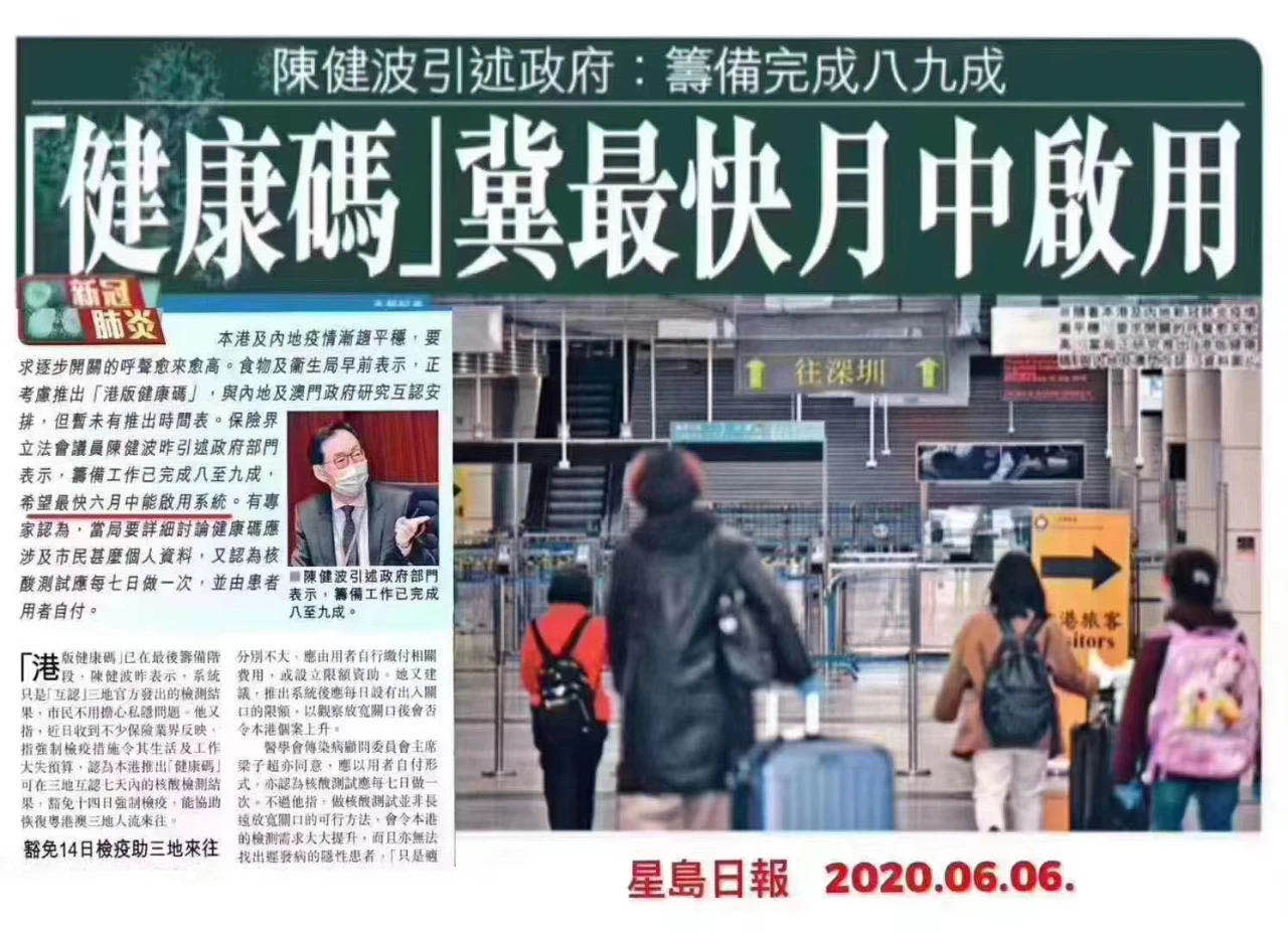 好消息,据星岛日报报道,有关「港版健康码」与粤港澳三地政府的文件互认措施已到最后筹备阶段,最快可于本周出炉。