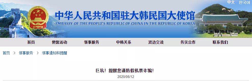 中国驻韩国大使馆再次提醒拟来韩转机的中国公民:谨防假机票陷阱。请通过航空公司客服中心、官方网站、手机APP等直销渠道购买机票。如通过其他渠道购买,务必进行“电子客票验真”。在未确定后续行程及行程所涉中转地过境政策前,切勿贸然启程来韩转机。