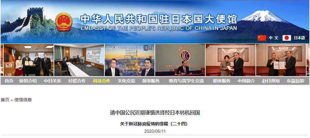 请中国公民近期谨慎选择经日本转机回国