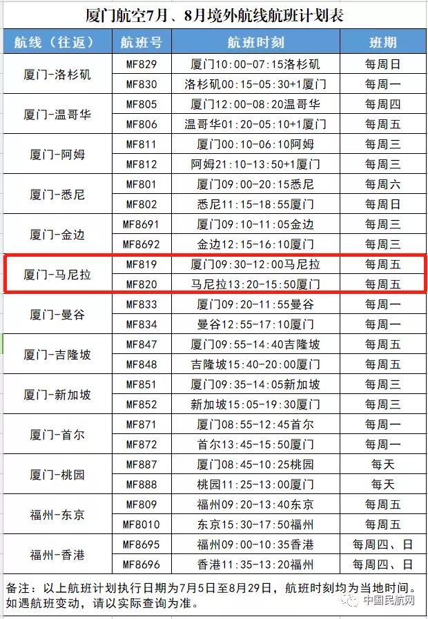 南航18日发布7月国际航班计划,7月,南航每周可执行国际及地区航线共计18条,具体航班计划如图所示: