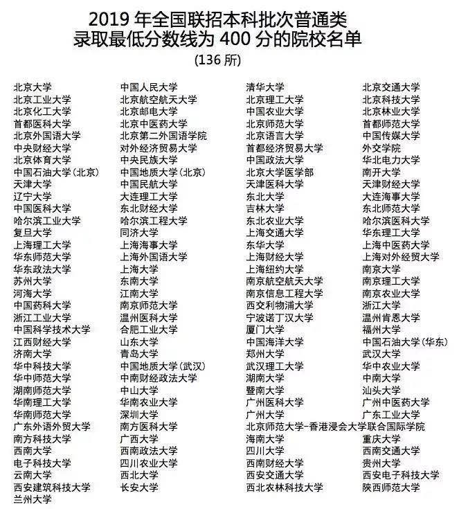 华侨生考试招收华侨港澳台联考的院校中,多数985、211重点大学的录取分数线为400分,清华北大复旦这类顶尖学府也在列表中。具体名单如下: