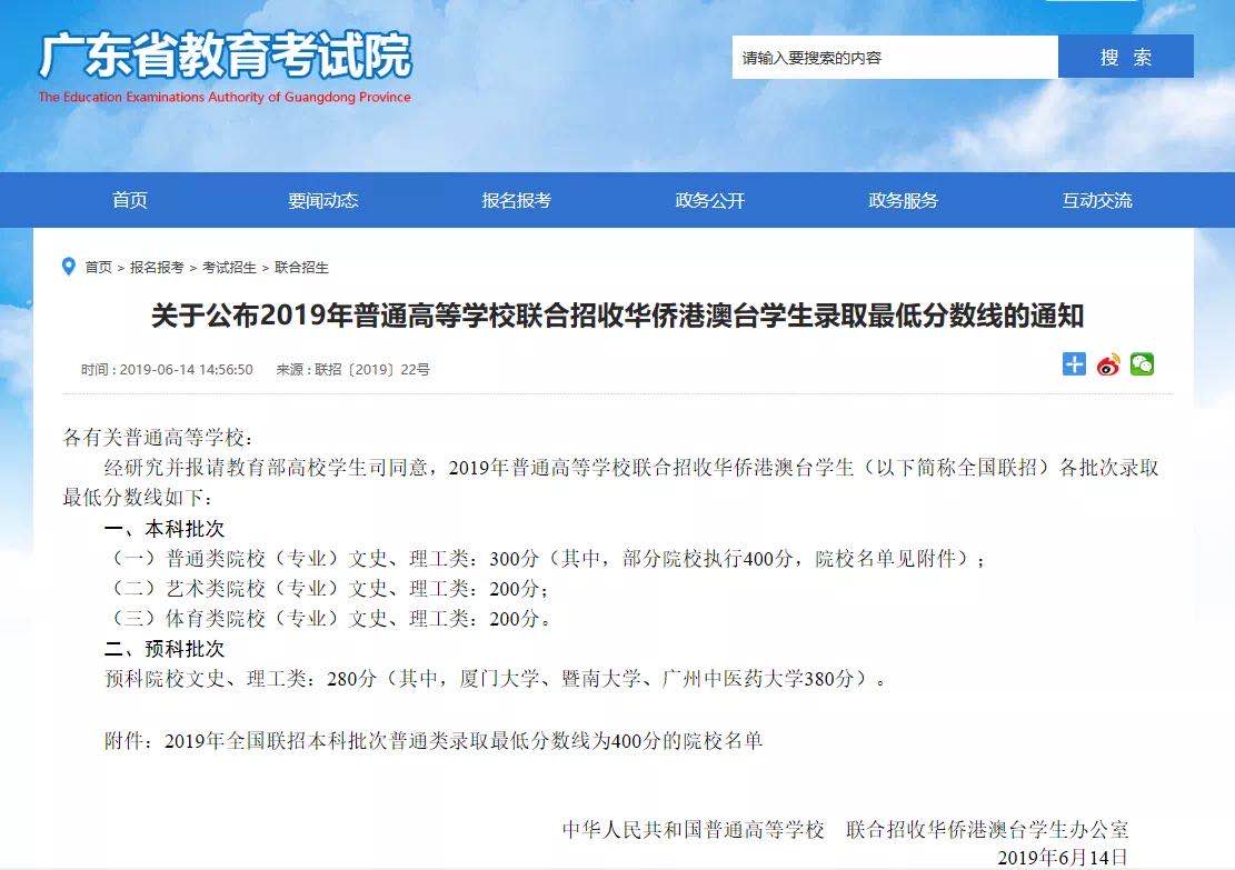 但华侨生的录取分数线比统招生低了大约200分,本科批次普通类院校300分,部分高校400分,艺术、体育类院校200分一本录取。