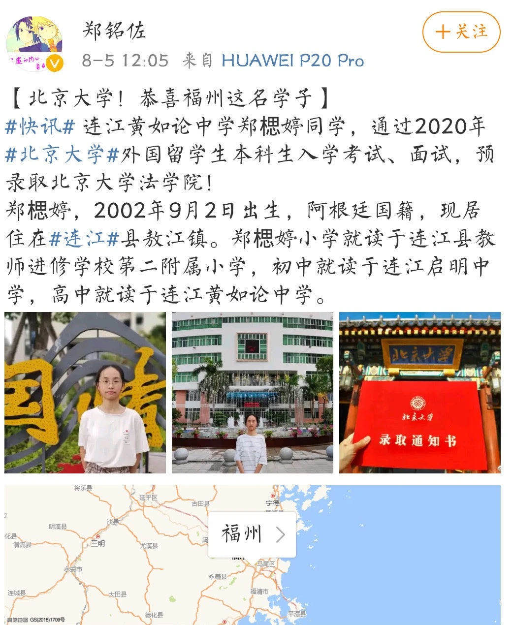 原来,郑楒婷一出生时就具有阿根廷国籍,可以参加北京大学的外籍留学生本科生入学考试。