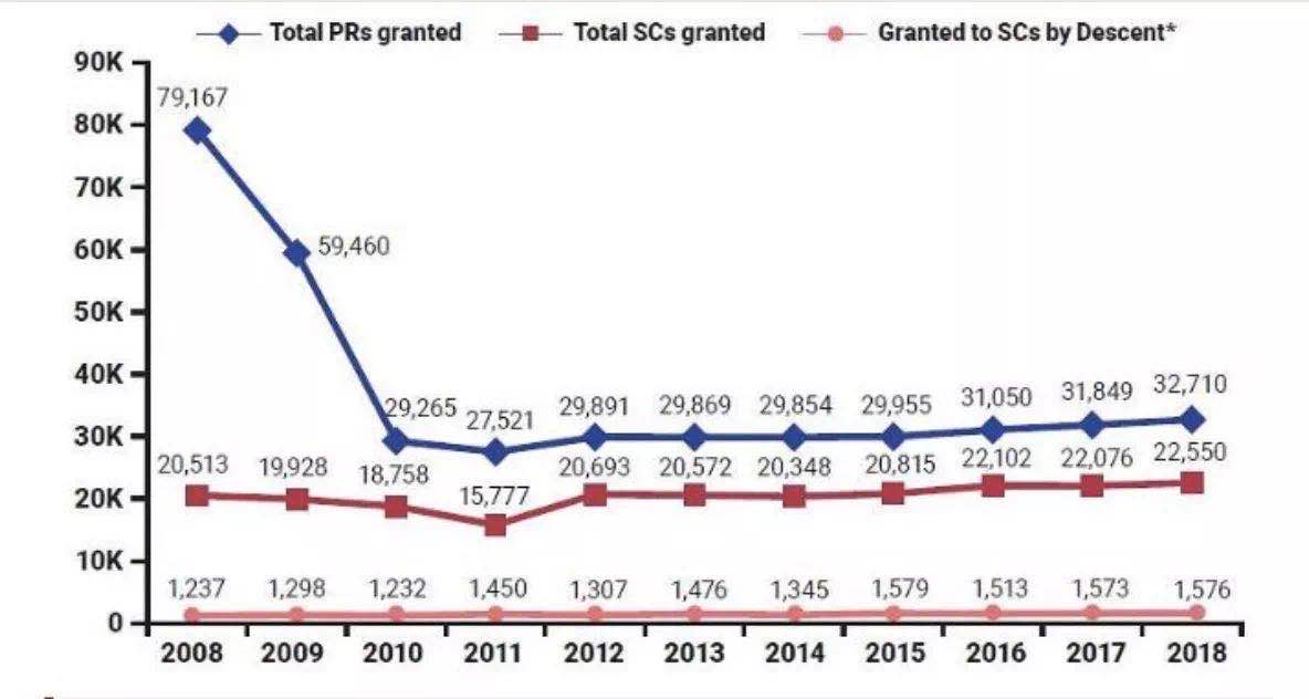 从过去十年来看,公民PR身份获批人数上升的趋势还是比较明显的。