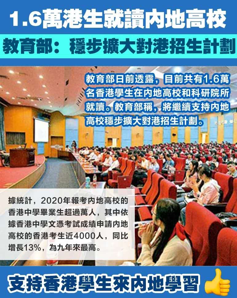 教育部透露,2020年通过各种途径报考内地高校的香港中学毕业生超过万人。