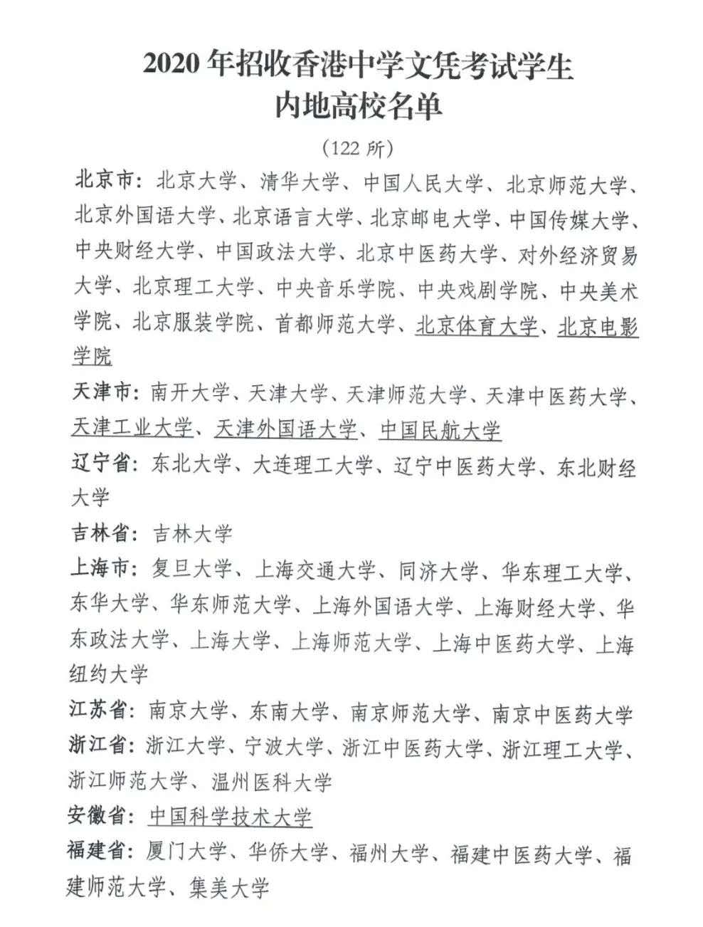 2020年参加该计划招收港澳籍学生的学校增加至122所,且大部分为“985”、“211”等重点大学。清华北大、复旦大学、上海交大等名校更是名列其中。