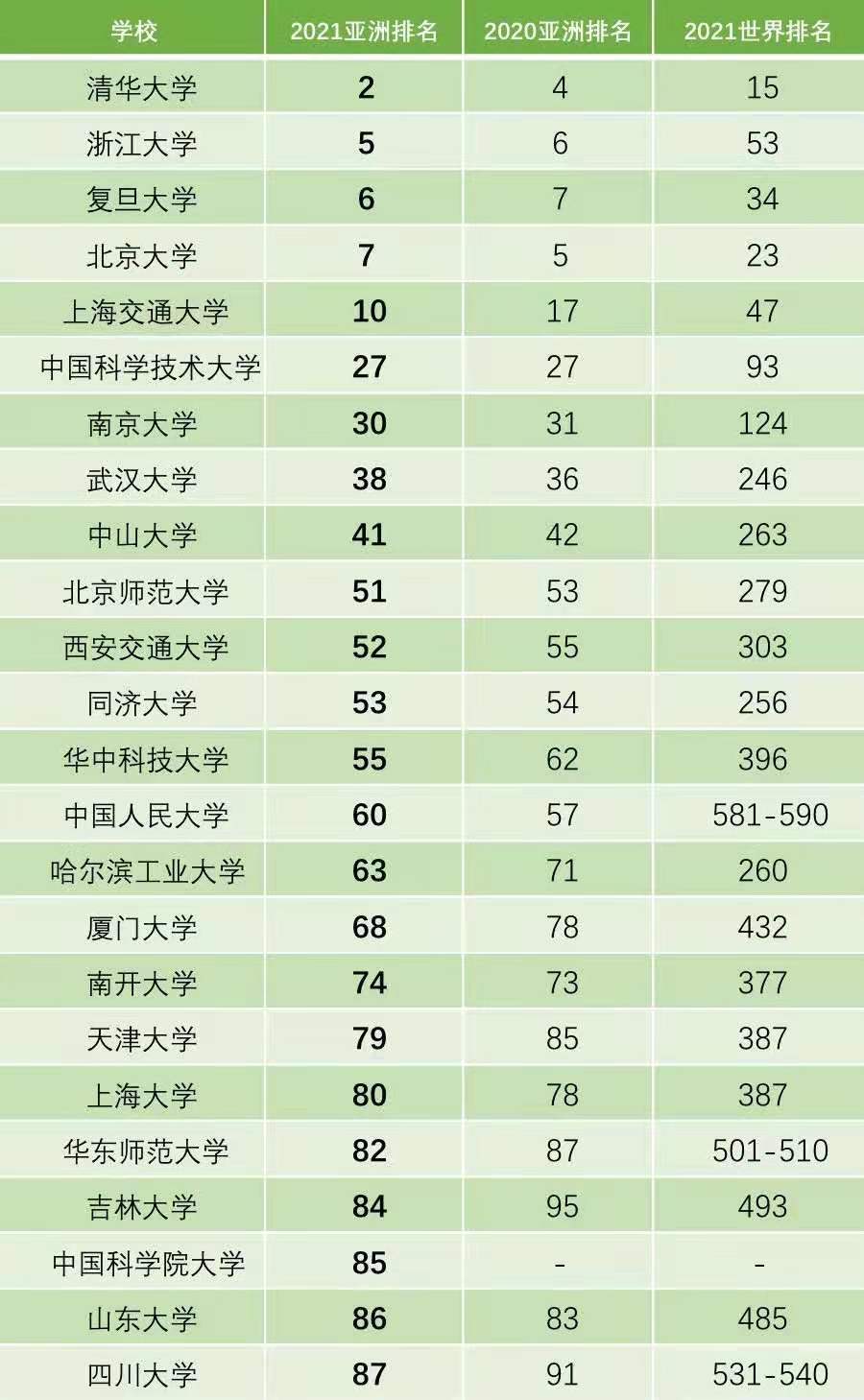 近日,「2021亚洲大学排行榜」(QS University Rankings Asia 2021)出炉。