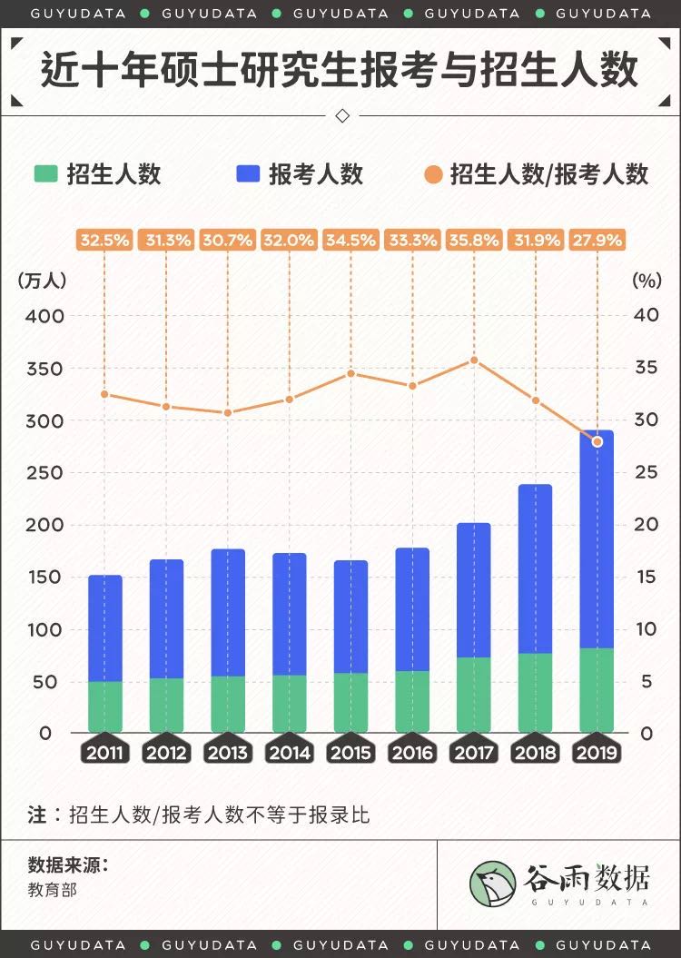 而报考的人越来越多,但报录比的差值在不断扩大,考研竞争加剧的趋势明显。
