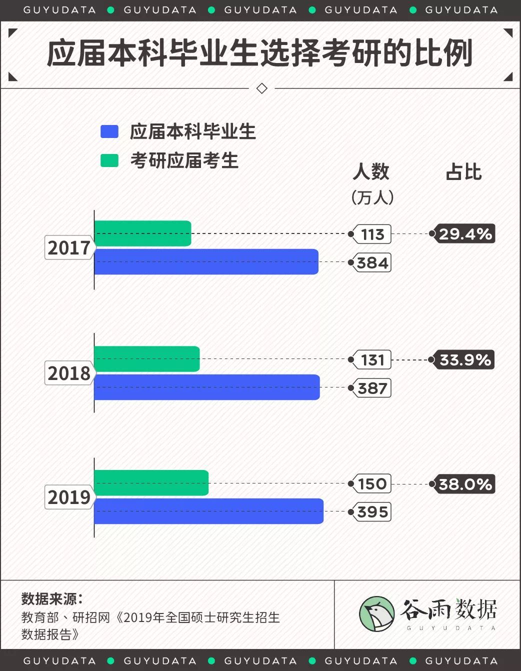 到2019年,有38%的应届生选择继续考研。
