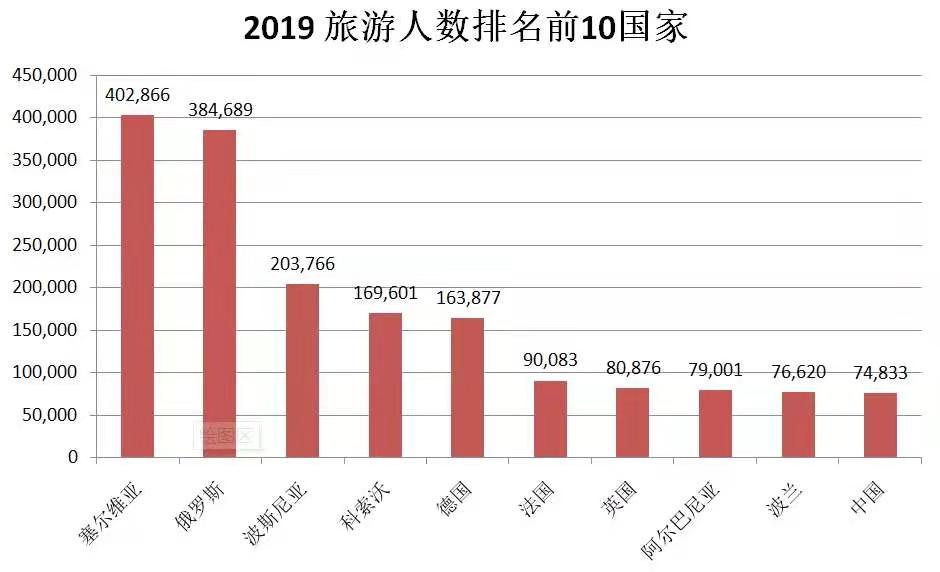 随着黑山共和国国家知名度越来越高,也吸引了众多中国游客, 2018年中国游客排名第12位, 2019年排名第10位。