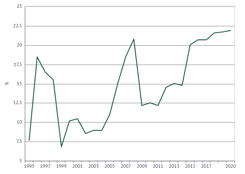 黑山的旅游业是主要经济支柱产业, 由于近几年黑山国家知名度提升,游客量大幅增长,同时带动旅游业收入, 截止到2020年,旅游业收入对国内生产总值的贡献率(占国内生产总值的百分比)为21.9%。