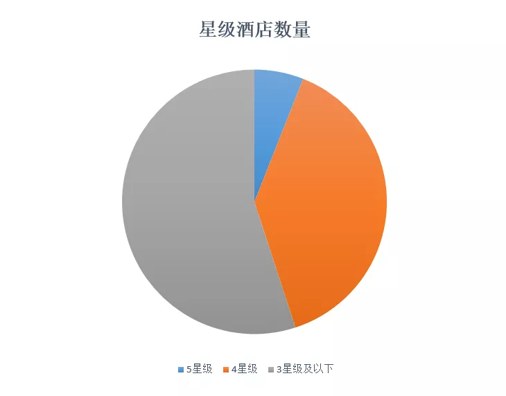 其中有25家五星级酒店占比6%,179家四星级酒店占比39%,一到三星级的酒店占比为55%。随着游客人数的不断上升,游客对于高品质酒店的需求逐渐增加。